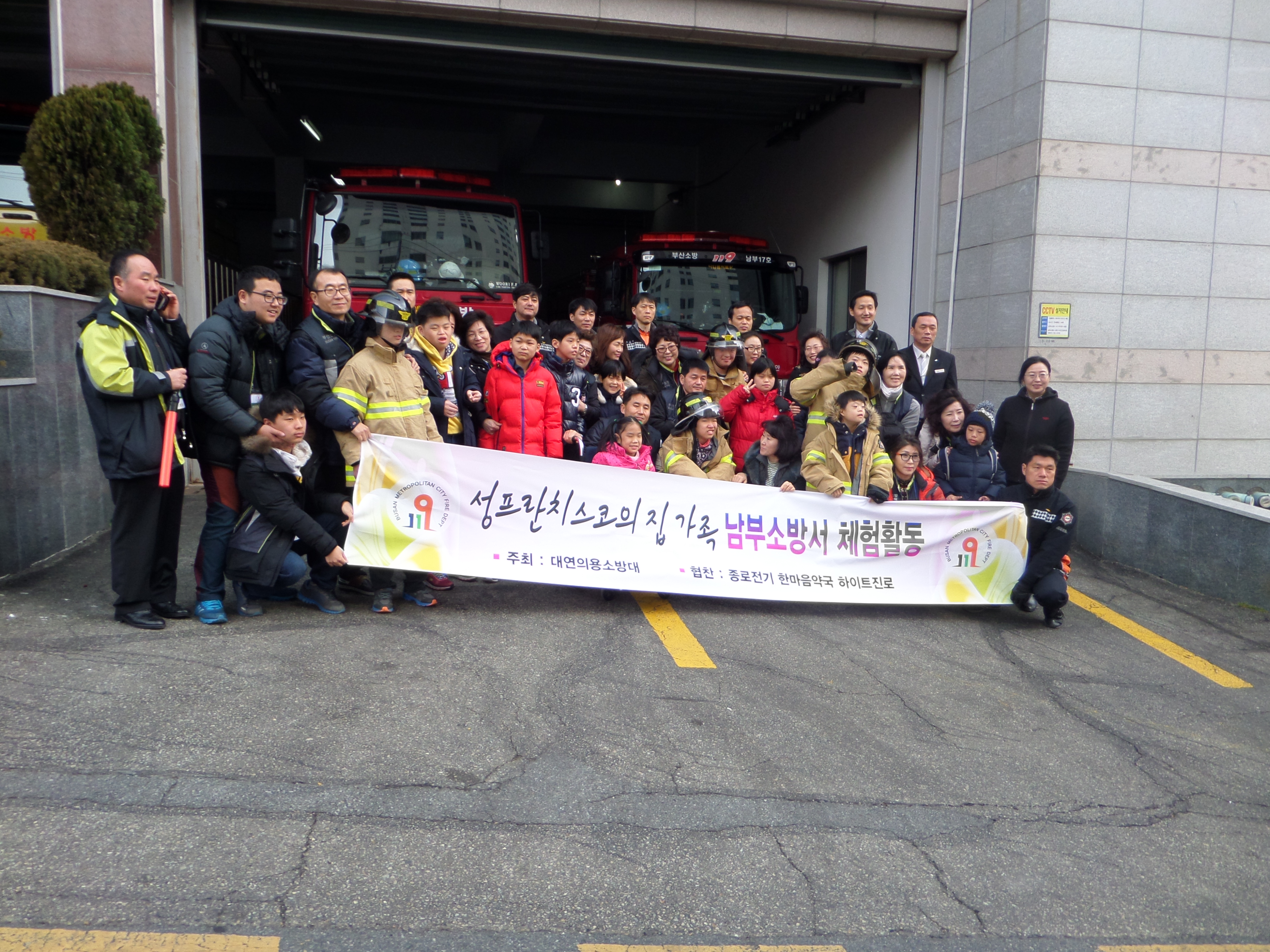 남부소방서 의용전대와 함께 남부소방서 견학을 다녀왔습니다. 시청각 교육, 심폐소생술, 방화복 착용, 소방차 탑승 등 다양한 체험활동을 통해 직'간접적으로 소방관 체험을 할 수 있었습니다. 비록 짧은 시간이었지만 안전의 중요성과 소방관들의 노고를 다시 한 번 생각하게 되는 소중한 시간이었습니다.