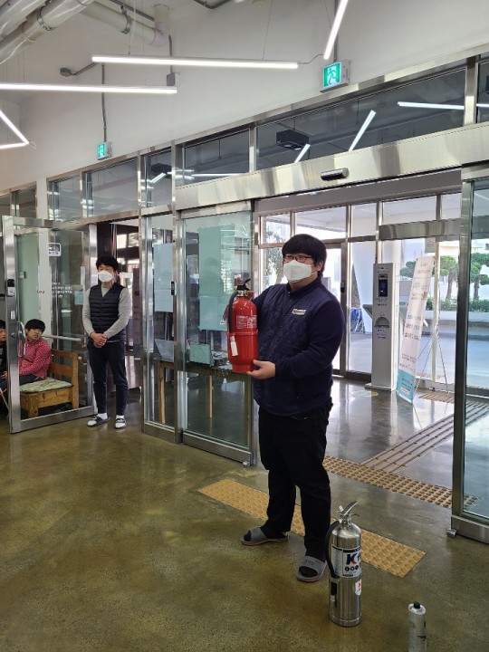 (주)한국소방에서 나오셔서 불이 났을 때 대피하는 방법과 소화기 사용방법을 설명해주셨습니다.