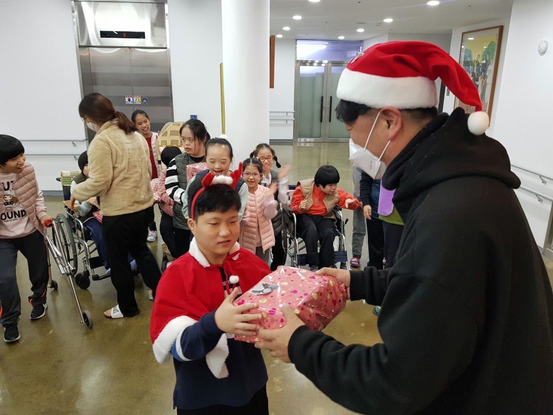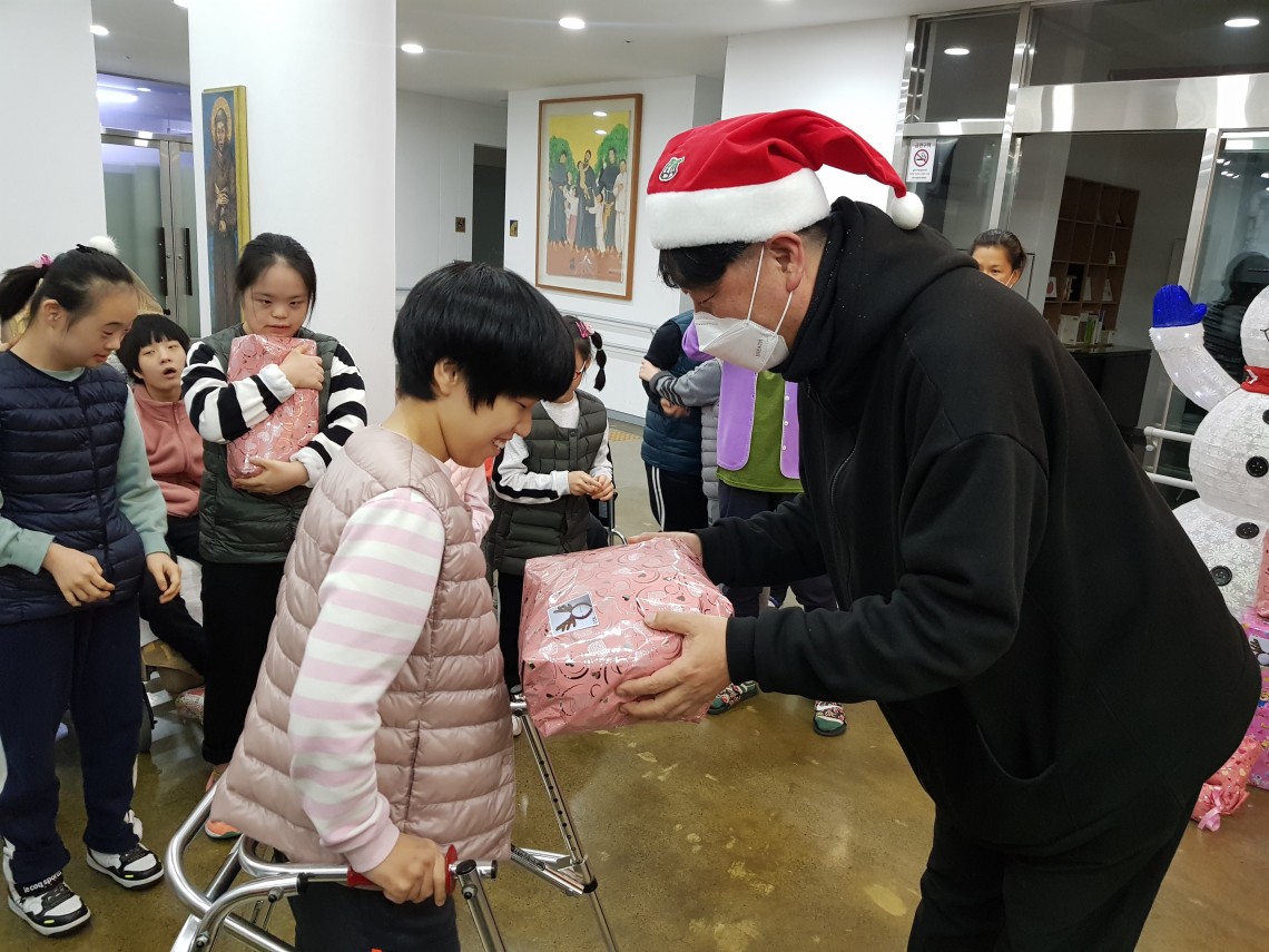 성프란치스꼬의집에 키가 아주 큰 산타가 오셨어요.