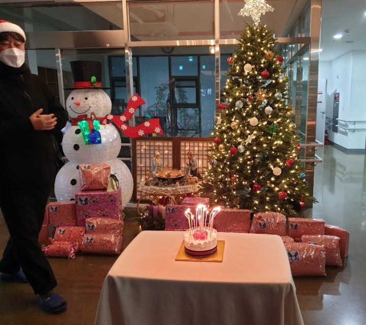 성프란치스꼬의집에 키가 아주 큰 산타가 오셨어요.