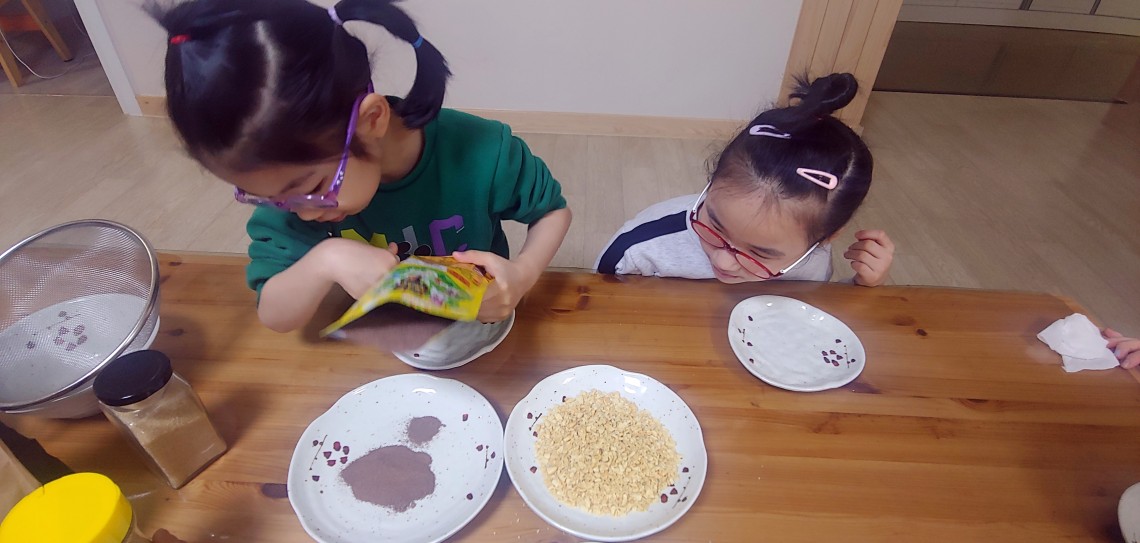직접 만들어 먹는만큼 원하는 고물을 묻혀서 아주 맛있게 먹었다고 해요.