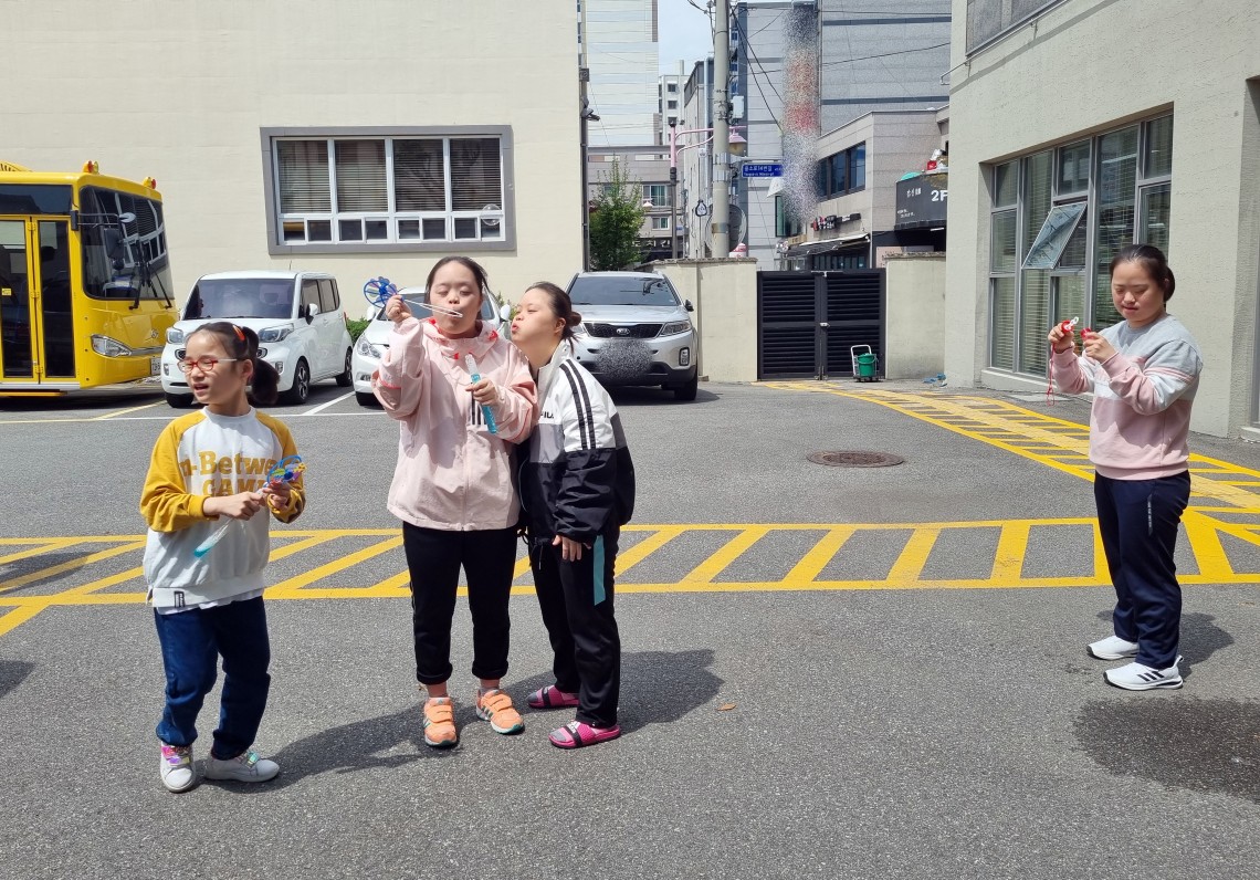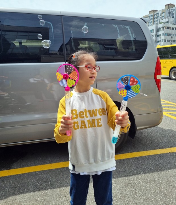 비누방울 놀이를 하고 있길래 얼른 나가봤습니다.