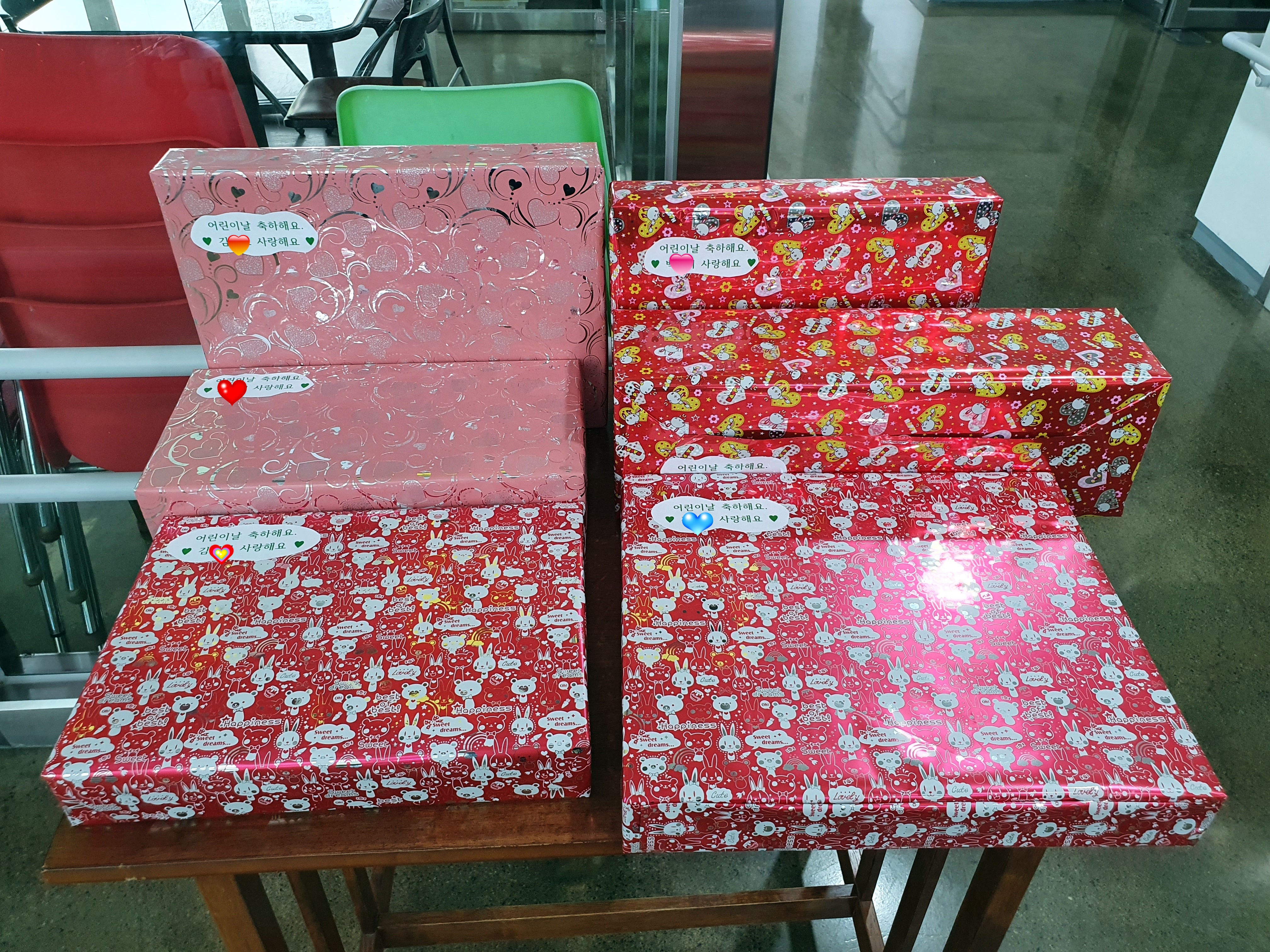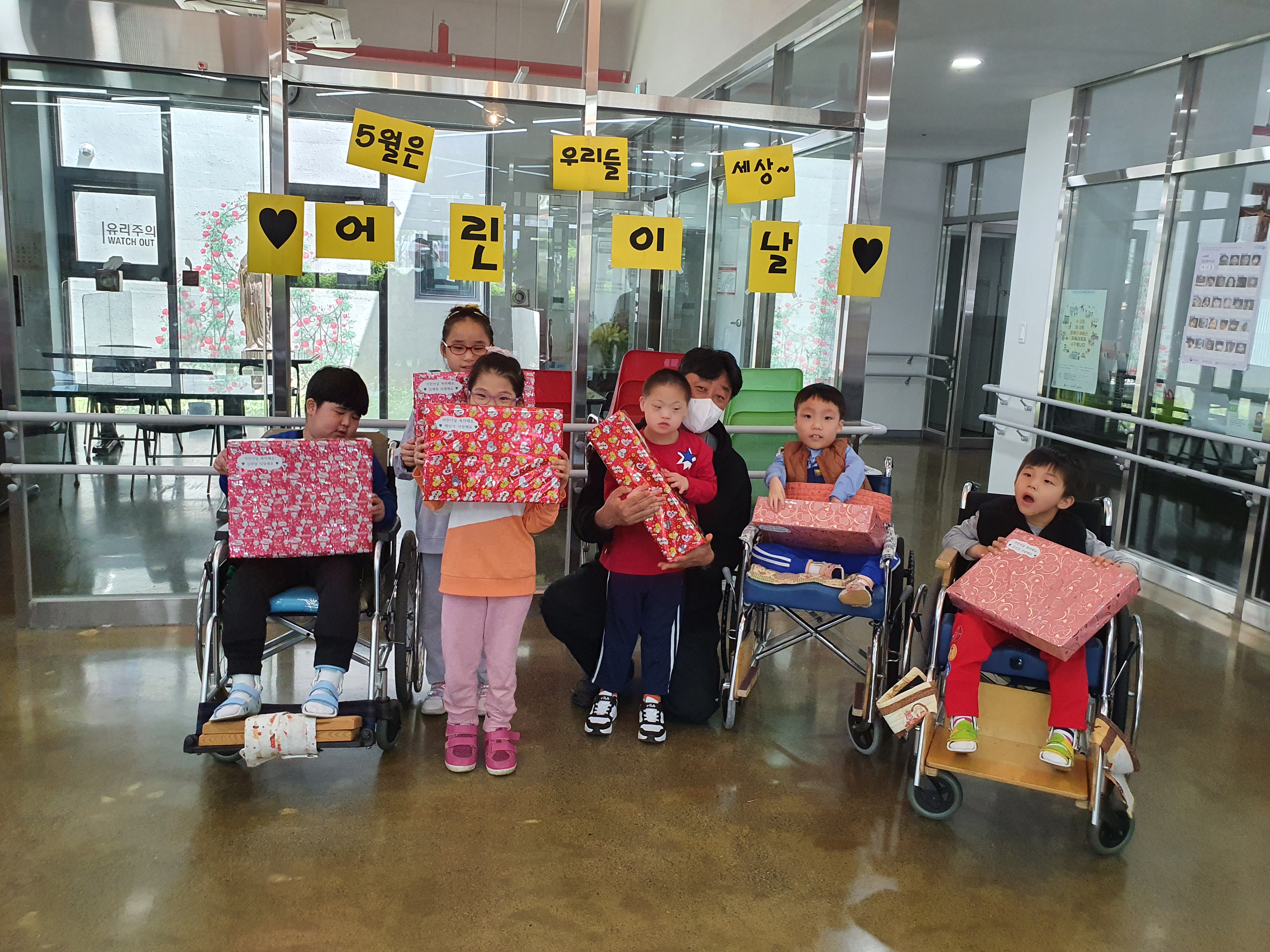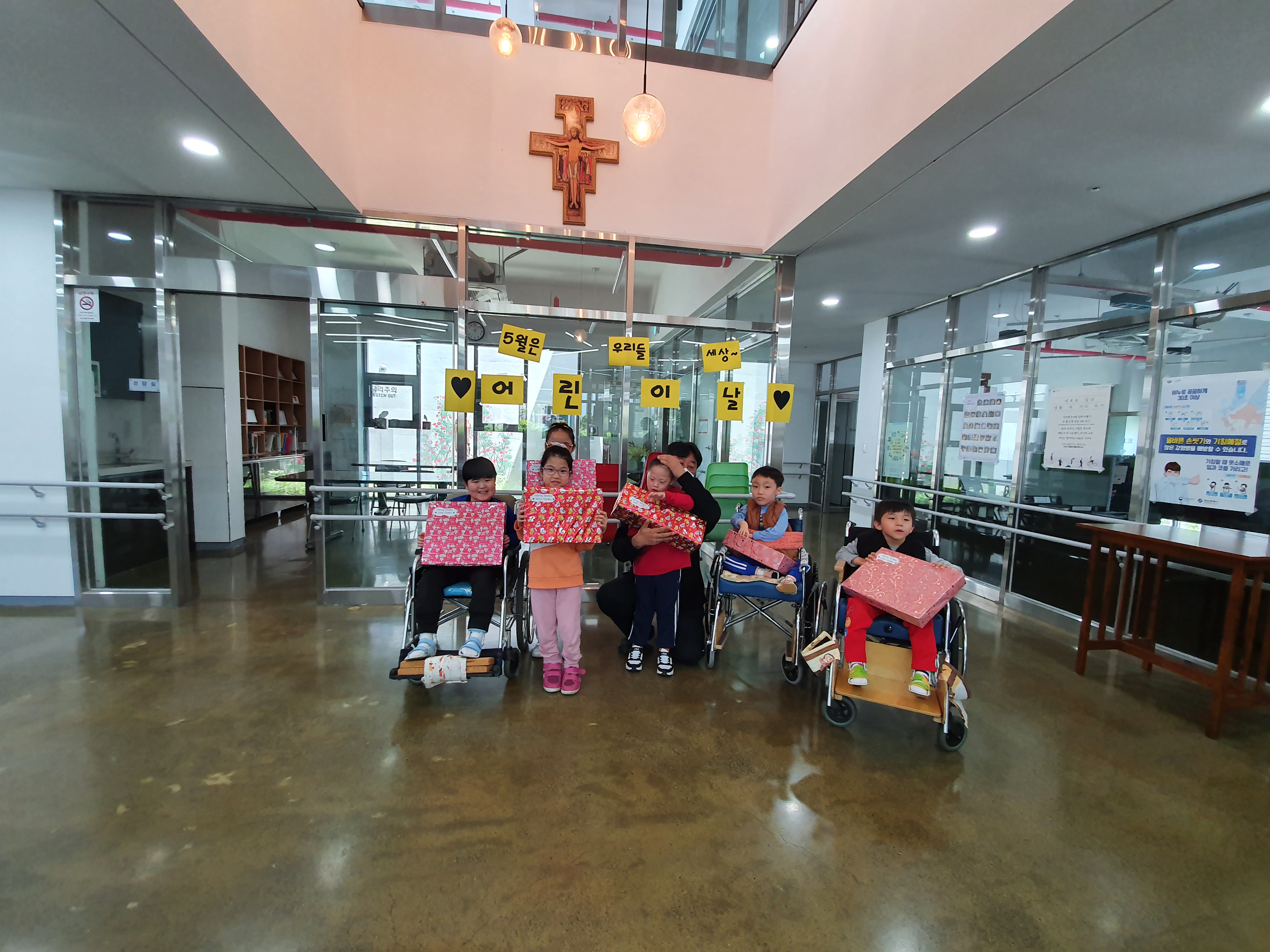 원장아빠께 어린이날 선물을 받아들고 좋아하는 우리 집 어린이들이랍니다.