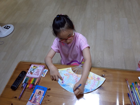준비된 도안에 직접 색칠을 해서 나만의 부채를 완성했습니다.