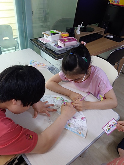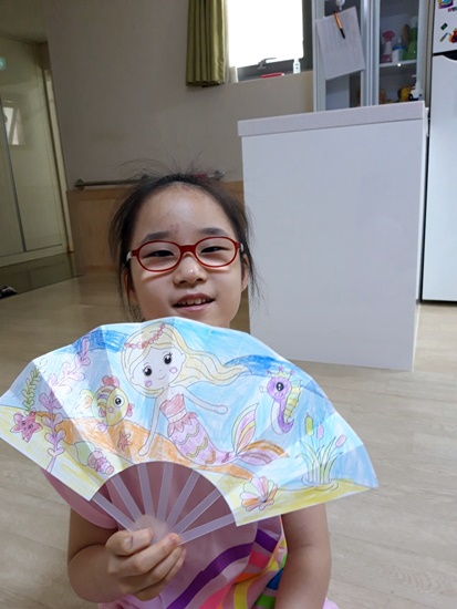 더위를 조금이라도 이겨보려고 달님방에서 여가시간에 부채를 만들었습니다.