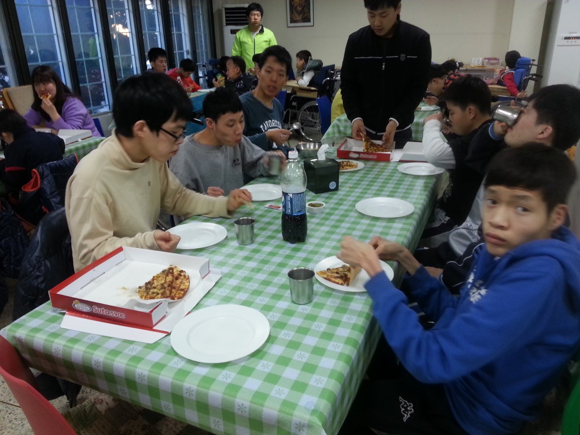 커피케잌 공연팀이 연말 기부공연을 통해 모여진 수익금으로 성프란치스꼬의집 가족들에게 장갑과 피자를 선물해 주셨습니다.