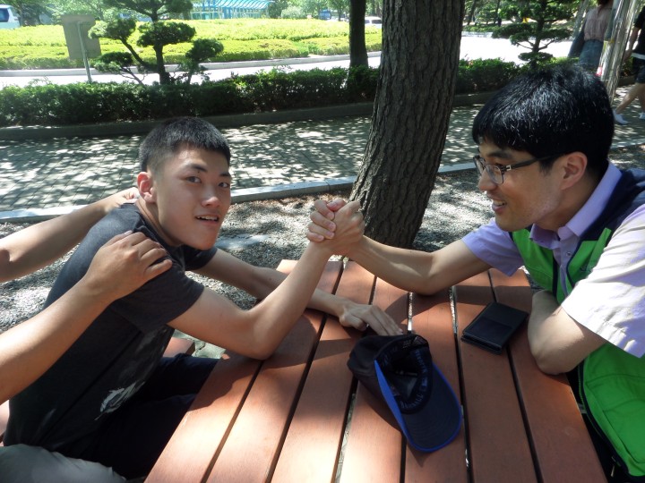 아빠처럼 다정하게 대해주는 청솔회 자원봉사팀 덕분에