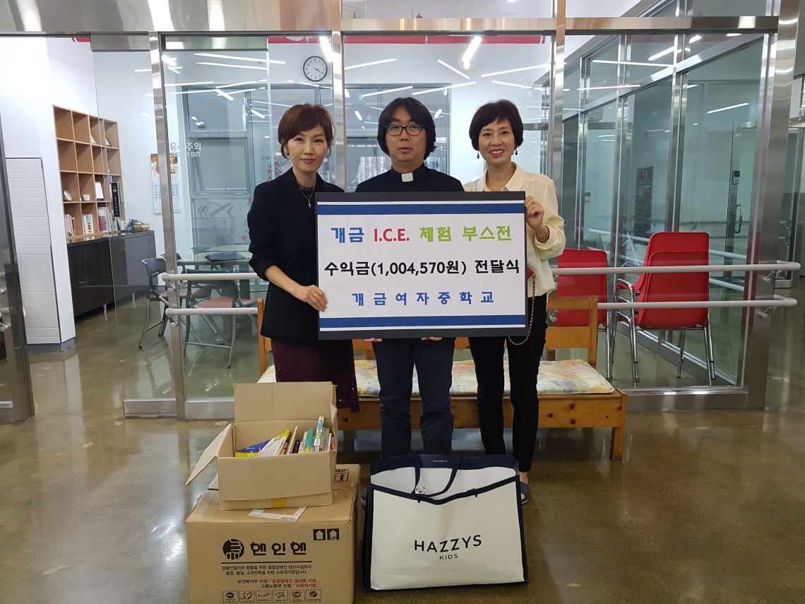 개금여자중학교에서 바자회 수익금 전액을 후원해 주셨습니다.