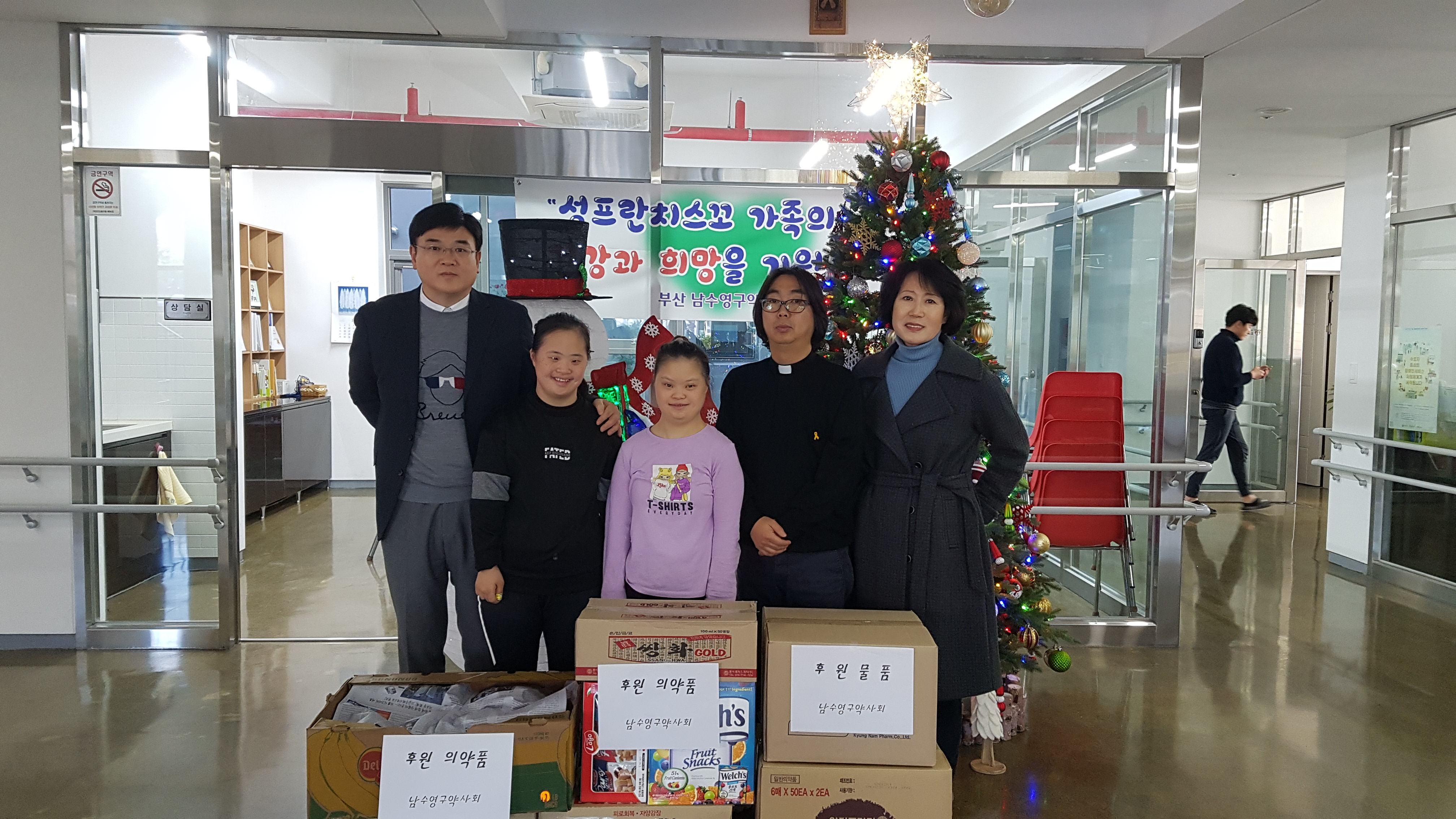 남수영구 약사회에서 각종 의약품과 간식을 후원해 주셨습니다.