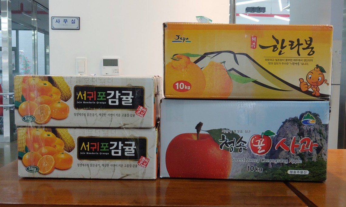 부산시청에서 설 명절 잘 보내라는 메시지와 함께 과일을 보내주셨습니다.