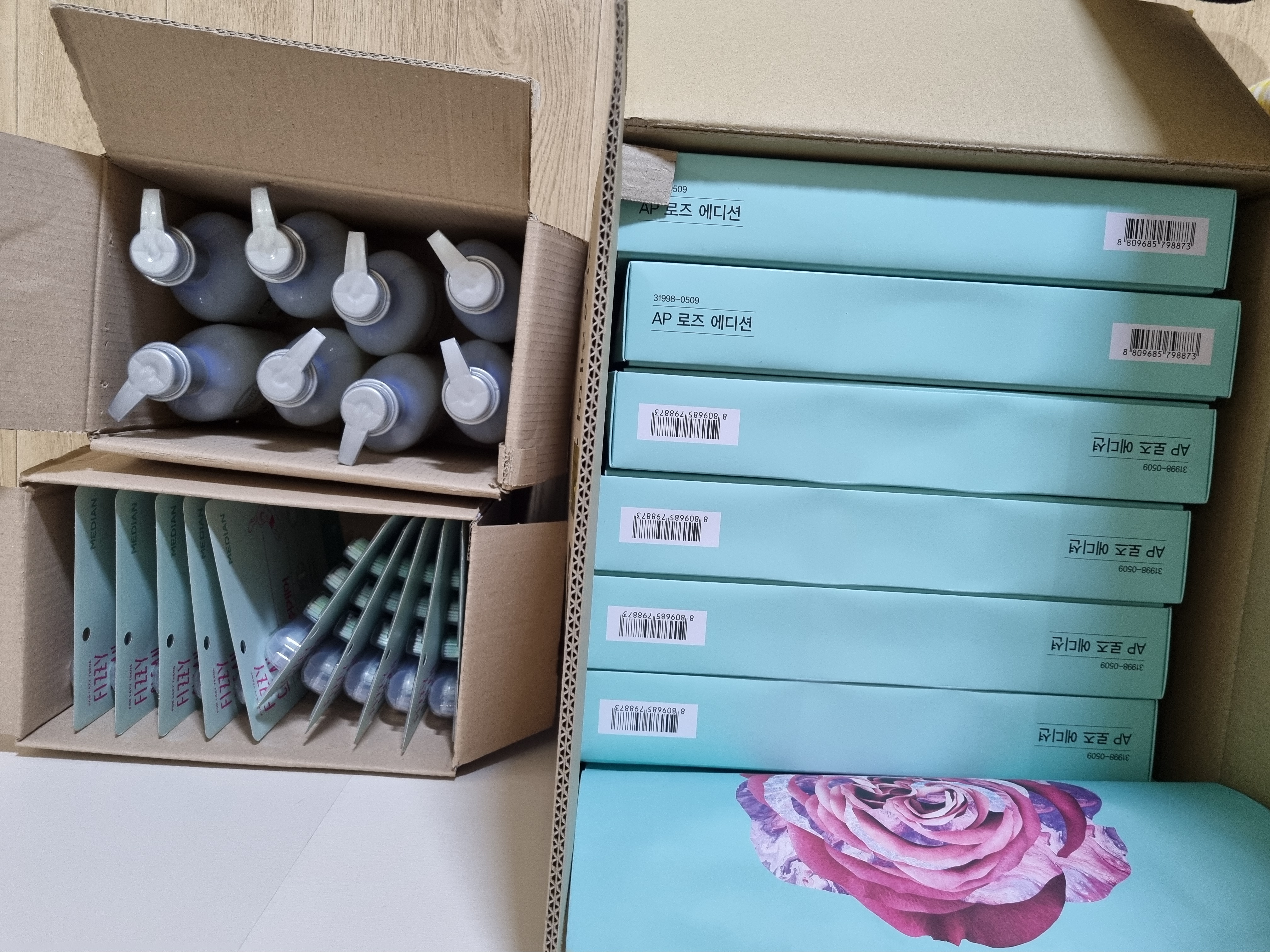목욕용품들이 가득 들어있습니다.