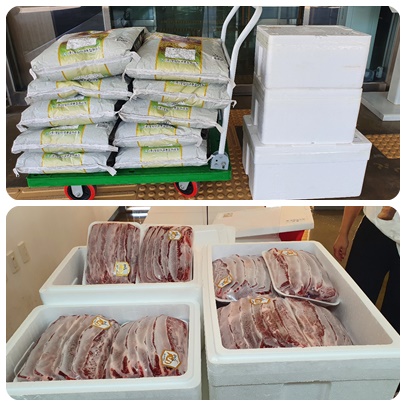 보내주신 고기와 쌀로 맛있는 식사하겠습니다.