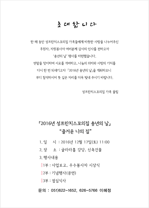 "2016년 송년의 날 행사" 에 초대합니다.