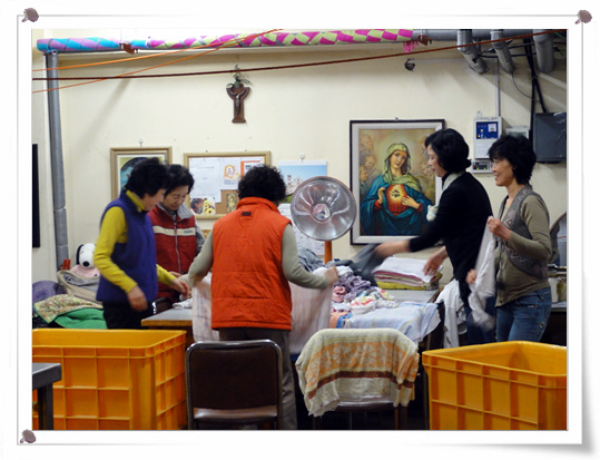 우동성당 교회의 어머니 레지오에서 세탁봉사를 오셨습니다.