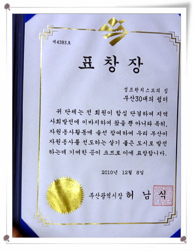 제5회 부산자원봉사자 대회에서 우리 집 목욕봉사 자원봉사단체인 '부산30대의 쉼터'가 부산시장상을 수상했습니다.